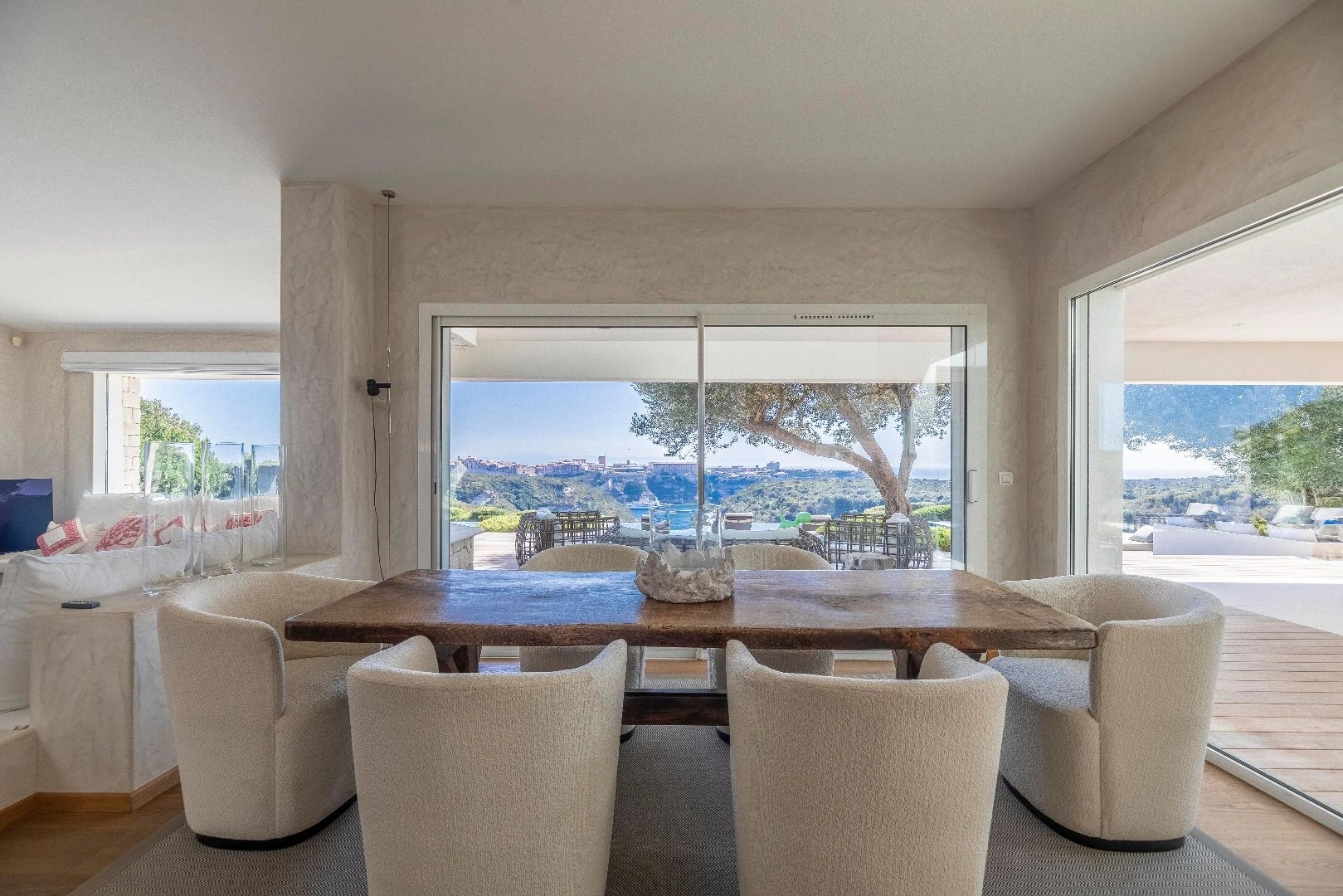 Depuis son parc d’oliviers séculaires, cette maison de luxe à Bonifacio porte son regard majestueux sur la cité historique de Bonifacio.